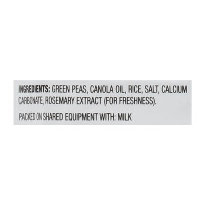 INGREDIENTS: Green Peas, Canola Oil, Rice, Salt, Calcium Carbonate, Rosemary Extract (for Freshness).