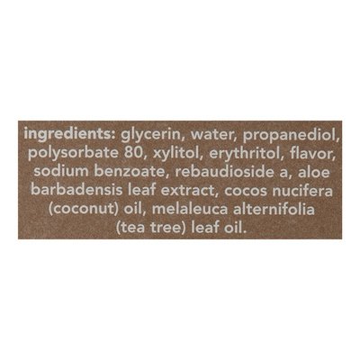 DESCRIPTION: Up to 64 uses. Natural flavor. No artificial flavors. Vegan. No sugar. No alcohol. No fluoride. No dyes. No artificial sweeteners. No SLS/sulfates. No brainer. Travel friendly. Big + bulky mouthwash bottles are so last year. And the amount of plastic they use totally stinks. With our small + spitacular mouthwash concentrate you get - 34% less plastic (compared to a 16 fl oz Hello adult mouthwash bottle dosed at 20 mL twice a day and using 2 pumps of concentrate twice a day) + 92% less water shipped per bottle of concentrate (Compared to a 16 fl oz Hello adult mouthwash bottle) + More doses than a 16 fl oz mouthwash bottle (compared to a 16 fl oz Hello adult mouthwash bottle dosed at 20 mL twice a day and using 2 pumps of concentrate twice a day). Just add water! A small change with a big impact. Rinses away stuff brushing misses takes your (bad) breath away moisturizes magnificently rocks tastebuds freshens breath. www.helloproducts.com. how2recycle.info. (hashtag)h2woah. 855-HI-HELLO 1-855-444-3556 www.helloproducts.com. Great News: This box, bottle, pump and cap are all recyclable! Please make sure all the bottle parts are connected when recycling. Thanks. Cruelty free. Leaping Bunny certified. Not tested on animals. < Glycerin, Water, Propanediol, Polysorbate 80, Xylitol, Erythritol, Flavor, Sodium Benzoate, Rebaudioside a, Aloe Barbadensis Leaf Extract, Cocos Nucifera (Coconut) Oil, Melaleuca Alternifolia (Tea Tree) Leaf Oil.