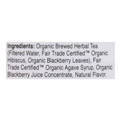 INGREDIENTS: Organic Brewed Herbal Tea (Filtered Water, Fair Trade Certified Organic Hibiscus, Organic Blackberry Leaves), Fair Trade Certified Organic Agave Syrup, Organic Blackberry Juice Concentrate, Natural Flavor.