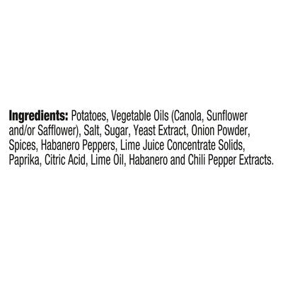INGREDIENTS: Potatoes, Vegetable Oils (Canola, Sunflower and/or Safflower), Salt, Sugar, Yeast Extract, Onion Powder, Spices, Habanero Peppers, Lime Juice Concentrate Solids, Paprika, Citric Acid, Lime Oil, Habanero and Chili Pepper Extracts.