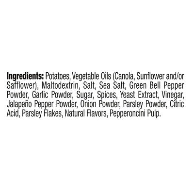 INGREDIENTS: Potatoes, Vegetable Oils (Canola, Sunflower and/or Safflower), Maltodextrin, Salt, Sea Salt, Green Bell Pepper Powder, Garlic Powder, Sugar, Spices, Yeast Extract, Vinegar, Jalapeno Pepper Powder, Onion Powder, Parsley Powder, Citric Acid, Parsley Flakes, Natural Flavors, Pepperoncini Pulp.