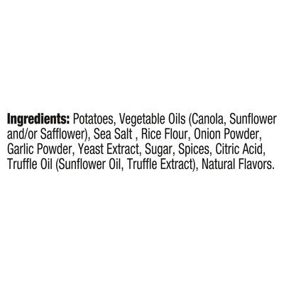 INGREDIENTS: Potatoes, Vegetable Oils (Canola, Sunflower and/or Safflower), Sea Salt, Rice Flour, Onion Powder, Garlic Powder, Yeast Extract, Sugar, Spices, Citric Acid, Truffle Oil (Sunflower Oil, Truffle Extract), Natural Flavors.