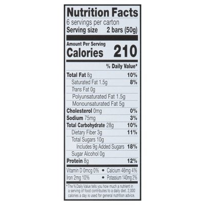 PRODUCT DETAILS: 6 packs of 2 breakfast bars. 8 g per serving. 18 g per serving. Sustained energy from 100% whole grains. Gluten free. Good source of protein. Non-GMO Project verified. nongmoproject.org. Sustained energy from 100% whole grains. Enjoy on-the-go as part of a balanced breakfast. Ingredients you can see & pronounce. kindsnacks.com. Instagram. Twitter. Facebook. Tell us your favorites & join the conversation: kindsnacks.com. +1 855.884.Kind. Recycle this carton. FSC: Recycled packaging made from recycled material. www.fsc.org. Made in U.S.A. with domestic and imported ingredients.