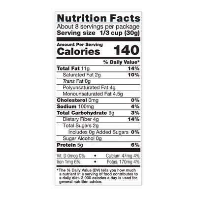 PRODUCT DETAILS: With almonds, cashews & coconut. 2 g total sugar. 3 g net carbs (how to calculate net carbs: 9 g total carbs - 4 g dietary fiber - 2 g allulose = 3 net carbs). 5 g protein. 11 g of fat per serving. Keto friendly. Gluten free. Zero g added sugar (Not a low calorie food. See nutrition information for calorie content). No sugar alcohols. Good source of fiber. Zero g added sugar (Not a low calorie food. See nutrition information for calorie content), unbelievably tasty. Non-GMO Project verified. nongmoproject.org. New. Ingredients you can see & pronounce. No artificial sweeteners. At Kind, we believe that people don't need to choose between nutrition and taste when it comes to snacking. That's why our Keto Friendly Kind zero g added sugar nut granola is made with nutrient-dense ingredients like whole nuts and never with artificial sweeteners or sugar alcohols, delivering the perfect balance of sweetness with 3 g net carbs. kindsnacks.com. Instagram. Twitter. Facebook. (at)kindsnacks. Made in USA with domestic and imported ingredients.