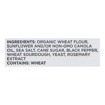 DESCRIPTION: Sourdough bread, olive oil, sea salt, black pepper. No artificial flavors, dyes or preservatives. Sourdough bread nothing artificial vegan friendly. Non-GMO Project verified. nongmoproject.org. Real bread makes real croutons. All natural. Taste the difference. Not quite your birthday suit, our Almost Naked croutons have nothing to hide with just a hint of sea salt and black pepper. Simple, refined, delicious! Perfect for salad, soup, snacking and so much more. Salad, soup, snack, breadcrumbs, eggs, crushed on pasta, hummus, feed the birds. Bread is joy: We're two brothers obsessed with bread. While other kids screamed for ice cream, we begged for a beautiful crusty sourdough loaf (thanks, (at)mom). Now we bring that same excitement to every bag of Kooshy croutons. Starting with the highest quality ingredients, we make a delicious loaf of real sourdough bread. Then we lovingly cut, season, and bake it once more to get that perfect crouton crunch-after all, bread is joy! kooshy.com. Follow us pleeease: Instagram. (at)kooshy. Tik Tok. (at)kooshycroutons. Twitter. (at)kooshycroutons. < Organic Wheat Flour, Sunflower and/or Non-GMO Canola Oil, Sea Salt, Cane Sugar, Black Pepper, Wheat Sourdough, Yeast, Rosemary Extract.