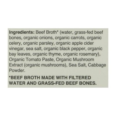 DESCRIPTION: Slow-simmered cooking broth for indulgent meals. No artificial flavors. 0 g sugar per serving (Low calorie). Low calorie. Gluten free. No sugars. No preservatives. All natural (Minimally processed, no artificial ingredients). It's not easy to find a full-flavored cooking broth made with premium ingredients. That's why we created our own line of Kettle & Fire cooking broths. We use real ingredients and 100% grass-fed beef bones, slow simmered for 20+ hours to create a rich cooking broth. Enjoy! - Justin and Nick, Founders, Kettle & Fire. Rich flavor, real ingredients. No preservatives. Use in dishes that call for beef broth and taste the difference real ingredients and long cook times can make. Perfect for cooking. U.S. inspected and passed by Department of Agriculture. kettleandfire.com/tips. Looking for recipes or tips on how to use? Visit: kettleandfire.com/tips. Tetra Pak. Protects what's good. Tetra Pak. Tetra Brik Aseptic. < Beef Broth (Beef Broth Made with Filtered Water and Grass-Fed Beef Bones) (Water, Grass-Fed Beef Bones, Organic Onions, Organic Carrots, Organic Celery, Organic Parsley, Organic Apple Cider Vinegar, Sea Salt, Organic Black Pepper, Organic Bay Leaves, Organic Thyme, Organic Rosemary), Organic Tomato Paste, Organic Mushroom Extract (Organic Mushrooms), Sea Salt, Cabbage Powder.