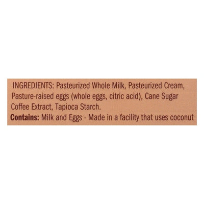 INGREDIENTS: Pasteurized Whole Milk, Pasteurized Cream, Pasture-Raised Eggs (Whole Eggs, Citric Acid), Cane Sugar Coffee Extract, Tapioca Starch.