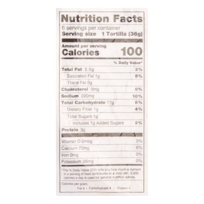 PRODUCT DETAILS: Simply better tortillas. USDA Organic. Certified Organic: Quality Assurance International. Certified Organic by QAI. Non-GMO Project verified. nongmoproject.org. Simply better tortillas. My grandparents started La Tortilla Factory in 1977 and three generations later, we remain committed to baking high quality, delicious tortillas that contribute to a nourishing (and busy) lifestyle. Food, family and well-being are at the heart of what we do, and we are passionate about delivering Simply Better Tortillas. - Jenny Tamayo, Third Generation Family Member. LaTortillaFactory.com. Facebook. Pinterest. Instagram. We use sustainably-sourced organic palm fruit oil.