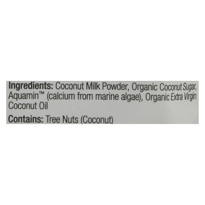 INGREDIENTS: Coconut Milk Powder, Organic Coconut Sugar, Aquamin (Calcium from Marine Algae), Organic Extra Virgin Coconut Oil.
