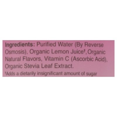 INGREDIENTS: Purified Water (by Reverse Osmosis), Organic Lemon Juice (Adds a Dietarily Insignificant Amount of Sugar), Organic Natural Flavors, Vitamin C (Ascorbic Acid), Organic Stevia Leaf Extract.