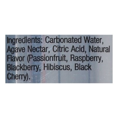 INGREDIENTS: Carbonated Water, Agave Nectar, Citric Acid, Natural Flavor (Passionfruit, Raspberry, Blackberry, Hibiscus, Black Cherry).