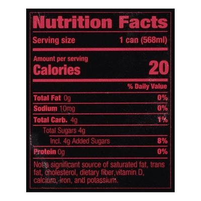 INGREDIENTS: Carbonated Water, Agave Nectar, Citric Acid, Natural Flavor (Passionfruit, Raspberry, Blackberry, Hibiscus, Black Cherry).