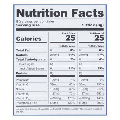 INGREDIENTS: Pure Cane Sugar, Dextrose, Citric Acid, Salt, Potassium Citrate, Sodium Citrate, Natural Flavors, Potassium Phosphate, Silicon Dioxide, Stevia Leaf Extract (Rebaudioside A), Vitamin C (Ascorbic Acid), Vitamin B3 (Niacinamide), Pantothenic Acid (Calcium D-Pantothenate), Vitamin B6 (Pyridoxine Hydrochloride), Vitamin B12 (Cyanocobalamin).
