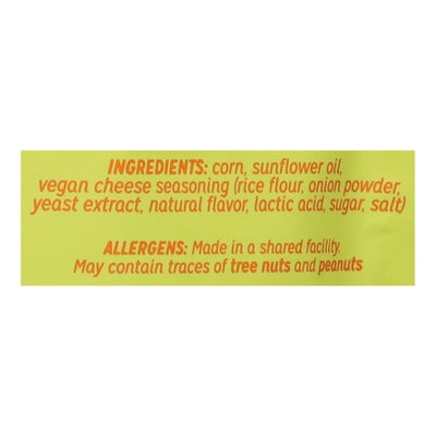 INGREDIENTS: Corn, Sunflower Oil, Vegan Cheese Seasoning (Rice Flour, Onion Powder, Yeast Extract, Natural Flavor, Lactic Acid, Sugar, Salt).