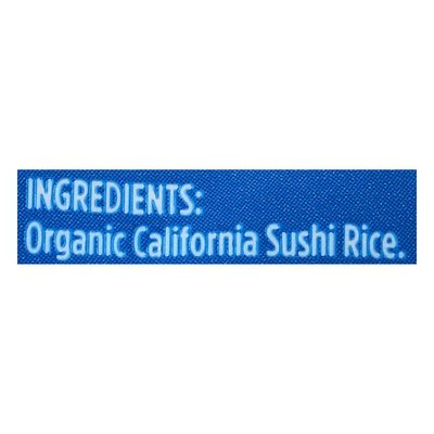 PRODUCT DETAILS: USDA organic. Gluten-free. Certified Organic by: Organic is Non-GMO & more. Certified Gluten-Free: By the the gluten-free certification Organization. www.gfco.org. Non GMO Project verified. nongmoproject.org. Non-GMO Project: Lundberg Family Farms supports the consumer's right choose foods that have not been genetically modified. This product has been produced in accordance with the best practices of the Non-GMO Project standard. For more information, please visit www.nongmoproject.org. A classic Japanese style short grain rice. Sustainable. Cultivating a Family Tradition: Over the years, the Lundberg family has produced high quality organic rice product. It's our passion and has been for over four generations. We've grown our rice sustainably, long before anyone used the world. Our organic farming methods conserve water resources, build soil integrity, and support a healthier ecosystem. Thanks for supporting organic farming! - The Lundberg Family. Sushi Short Grain White Rice: Sticky & Versatile: A classic Japanese style short grain rice grown especially for making sushi. It is truly superb in traditional sushi rolls, salads, and other Asian dishes. www.lundeberg.com. For delicious recipe ideas, visit www.lundberg.com. Re-closable with Velcro brand Press-Lok. Velcro and Press-Lok are owned by Velcro BVBA. Used with permission. This product was manufactured with 100% renewable energy. BPA-free. American grown.