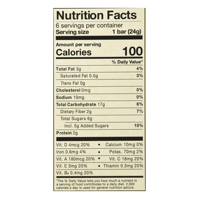 PRODUCT DETAILS: USDA Organic. Organic. Certified Organic by Pro-Cert. Nut free. What makes this a Madegood product? Nut Free: Made in a dedicated peanut and tree nut free facility. USDA Organic: Certified organic. Non GMO project verified. Contains nutrients from vegetables. Certified gluten-free. Certified gluten by GFCO. Whole Grain: 10 g or more per serving. Eat 48 g or more of whole grains daily. WholeGrainsCouncil.org. Contains 10 g of whole grains per serving. Certified vegan. Vegan.org. Non GMO Project verified. nongmoproject.org. Free from nuts & safe for schools. Nutrients from vegetables. We believe that good food is for everyone. This is why we source organic ingredients and bake our delicious snacks in an allergen-free facility. We work hard as a company to put sustainability first to support our environment. It takes rigor to rewrite the rules, but the future is worth it.happy snacking! - Nima, Sahba, Salma. Vitamins from vegetable extracts. Allergy friendly. Dedicated Facility Free from the Following Common Allergens: Peanuts; tree nuts; wheat & gluten; soy; dairy; egg; sesame; fish & shellfish. www.madegoodfoods.com FSC: Recycled - Packaging made from recycled material. Recyclable. Product of Canada.