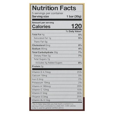 PRODUCT DETAILS: No artificial colors or flavors. USDA Organic. Nut free. Certified Organic by Pro-Cert. Allergy Friendly: Dedicated facility free from the following common allergens: peanut; tree nuts; dairy; egg; wheat & gluten; soy; sesame; fish & shellfish. What makes this product MadeGood: Nut free: Made in a dedicated peanut and tree nut free facility. Certified organic. Certified gluten free. gfco.org. Whole Grain: 10 g or more per serving. Eat 48 g or more of whole grains daily. WholeGrainsCouncil.org. Certified vegan. Vegan.org. Good source of Vitamin C & D. Non-GMO Project verified. nongmoproject.org. www.madegoodfoods.com. how2recycle.info. Facebook. Instagram. Connect with us: (at)madegoodfoods. Do you want to learn more about MadeGood? Visit us on: www.madegoodfoods.com. Certified B Corporation. FSC: Recycled. Packaging made from recycled material. www.fsc.org. Product of Canada.