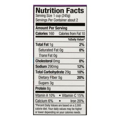 PRODUCT DETAILS: 160 calories (per 245 g serving); 290 mg sodium (per 245 g serving); 8 g protein (per 245 g serving). Vegan. Certified Vegan. vegan.org. ow fat. USDA Organic. Certified organic by QAI. Certified gluten-free. Lower sodium. 53% less sodium than leading competitor (this soup contains 290 mg sodium per serving. The leading competitor's split pea soup contains 620 mg sodium per serving). Non GMO Project verified. nongmoproject.org. Plant-based. We love sharing our favorite plant-based soups with you. Simple and delicious, our organic lower sodium black bean soup is a hearty meal sure to please. try it over quinoa, brown rice or roasted potatoes. Sustaining the earth sustaining you. rightfoods.com. (hashtag)rightfoods. Instagram. Facebook. YouTube. Pinterest. Looking for more ways to enjoy our foods? Head to rightfoods.com for delicious, easy recipes! Dr. McDougall has helped thousands improve their health and quality of life by teaching the benefits of a plant-based diet. The famous McDougall Program is located in Santa Rosa, California. Tetra Pak: Tetra recart. This packaged is not lined with the chemical Bisphenol A (BPA), and is recyclable in certain locations in the US. Please recycle. recyclecartons.com. FSC: Mix - Board from responsible sources. www.fsc.org.