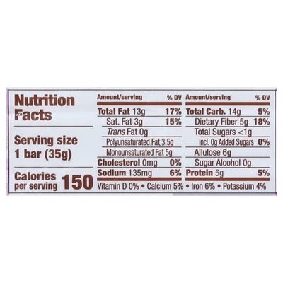PRODUCT DETAILS: Less than 1 g sugar. 3 g net carbs [3 g net carbs = total carb. (14 g) - fiber (4 g) - allulose (7 g)]. 150 calories. 5 g protein. 0 g sugar alcohol. Gluten free. Certified gluten free. gfco.org. Keto. See nutrition panel for fat content. Non-GMO Project verified. nongmoproject.org. Low glycemic index. For all life's adventures.