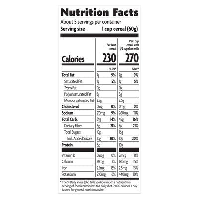 PRODUCT DETAILS: 6 g fiber per serving. USDA Organic. Vegan. Certified Organic: Quality Assurance International (QAI). 25 g whole grains per serving. Whole Grain: 25 g or more per serving. Eat 48 g or more of whole grains daily. WholeGrainsCouncil.org. A delicious & excellent source of ALA omega-3 (Contains 790mg of ALA per serving which is 49% of the 16g daily value for ALA). Non-GMO Project verified. nongmoproject.org. Always organic. Real crunchy cereal (it'll put your other cereal to shame). Tasty pecans. ALA omega-3 rich (Contains 790mg of ALA per serving which is 49% of the 16g daily value for ALA) flax seeds. Real maple syrup. To make our Flax Plus Maple Pecan Crunch, we combined organic whole wheat and flax flakes, rolled oat granola clusters, a sprinkle of pecans, and a drizzle of maple syrup. The end product is a deliciously crunchy and wholesome breakfast that'll show you just how good organic food can be. Our Always Organic Legacy began on the family farm I was raised on. In 1985. We founded Nature's Path Organic Foods based on my dad's advice to Always leave the soil better than you found it, by farming without chemical pesticides, fertilizers or GMOs that are prohibited by organic standards. For over 30 years. Our family has aspired to make delicious organic foods and an enduring independent company that you can love and trust. - Arran, From our family to yours Arran Stephens, Co-founder. Mountain valley farm, 1944. Arran. From our family to yours Arran Stephens, co-founder. This product is sold by weight. not by volume. You can be assured of proper weight even though some settling of contents normally occurs during shipment and handling. Eat true. The purpose of life, after all, is to live it, to taste experience to the utmost, to reach out eagerly and without fear for newer and richer experiences. Eleanor Roosevelt. Quality Guarantee: Not feeling the love? If you're less than thrilled with this product, let us know. Just send the UPC and the best before code to: Consumer service c/o Nature's Path Foods, (hash)275-250 H.st. Blaine WA, 98230 USA or contact us at www.naturespath.com/ contact-us and we'll make things right. www.naturespath.com. how2recycle.info. Let's stay connected! Facebook. Instagram. Twitter. Pinterest. Boost your breakfast with these always organic options. Pumpkin raisin crunch. crunchy clusters. Whole grain heritage flakes. Crispy crunchy! Sunrise crunchy maple. Csirpy & crunchy! Look for these on your next shopping trip! Packaging made from recycled material. EnviroBox. Were always trying to 'Leave the Earth better than we found it', so a lot of our cereals are available in innovative, eco-friendly packages that are a little better for the environment (and for you). This box is made from FSC certified recycled paper, printed with vegetable based inks & it's 10% smaller than it used to be. FSC: Recycled - Packaging made from recycled material. www.fsc.org. Thank you for recycling. Product of USA.