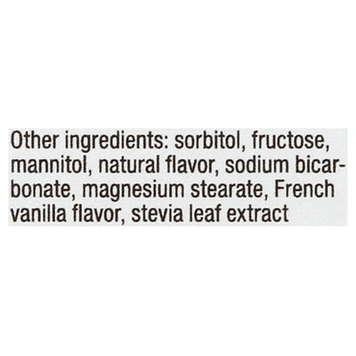 INGREDIENTS: Other Ingredients: Sorbitol, Fructose, Mannitol, Natural Flavor, Sodium Bicarbonate, Magnesium Stearate, French Vanilla Flavor, Stevia Leaf Extract.