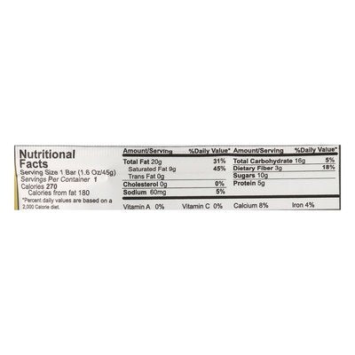 INGREDIENTS: Organic Raw Cashews, Organic Brown Rice Syrup, Organic Raw Cacao Butter, Organic Raw Blue Agave, Organic Peanut Butter (Organic Peanuts), Organic Raw Shredded Coconut, Organic Raw Vanilla Beans & Pink Himalayan Salt, Organic Chocolate Coating: Organic Chocolate Liquor, Organic Cacao Butter, Organic Cane Sugar, Organic Vanilla.