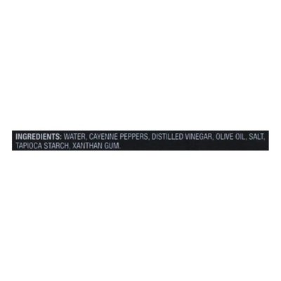 INGREDIENTS: Water, Cayenne Peppers, Distilled Vinegar, Olive Oil, Salt, Tapioca Starch, Xanthan Gum.