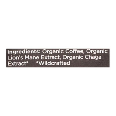 DESCRIPTION: Tastes like coffee, not like mushrooms. Deliciously crafted to elevate your day. Inspired by our finish roots, we're upgrading everyday favorites like coffee and protein with premium functional ingredients. We believe elevated wellness should be a delicious and almost-magically easy part of your day. Your brain's best friend. Adds a productive oomph to your day. Supports cognitive function. Helps avoid coffee's dreaded dark side. Supports whole body wellness. Elevates your coffee routine with functional ingredients. Notes of dark chocolate & nuts. Made with the best of the best. Our fair trade coffee beans come from Pacayal Coffee a family-run farm located 5,500 feet above sea level in southwest Honduras. Our organic Lion's mane mushrooms are long-grown, and our Chaga is sustainably wild-harvested from birch trees, just as nature intended. We extract real mushrooms (no mycelium or grains here) to unlock the best of the best benefits. FourSigmatic.com. Questions? Real humans have answers. Email: support(at)foursigmatic.com. Text: +1(213) 699-4616. Made in the USA with foreign ingredients. < Organic Coffee, Organic Lion's Mane Extract, Organic Chaga Extract (Wildcrafted).