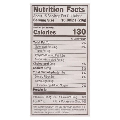INGREDIENTS: Organic Whole Ground Corn, Organic Sunflower Oil and/or Organic Safflower Oil, Sea Salt.