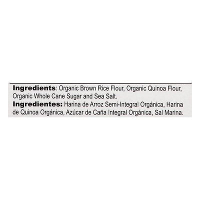 INGREDIENTS: Organic Brown Rice Flour, Organic Quinoa Flour, Organic Whole Cane Sugar and Sea Salt.