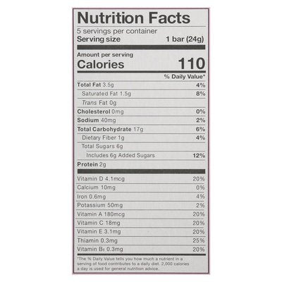 PRODUCT DETAILS: No artificial flavors. USDA Organic. Certified gluten free. Allergy Friendly: Dedicated Facility Free from the Following Common Allergens: Peanuts; tree nuts; dairy; egg; wheat & gluten; soy; sesame; fish & shellfish. What makes this a MadeGood product? Nut Free: Made in a dedicated peanut and tree nut free facility. Contains nutrients from vegetables extracts. Whole Grains: 8 g or more per serving. Eat 48 g or more of whole grains daily. Contains 8 g of whole grains per serving. wholegrainscouncil.org. Certified Organic by Pro-Cert. Contains nutrients from vegetables extracts. Good source of vitamin C & D. Non-GMO Project verified. nongmoproject.org. Nutrients from vegetable. www.madegoodfoods.com. how2recycle.info. Facebook. Instagram. Connect with us: (at)madegoodfoods. Do you want to learn more about MadeGood? visit us on: madegoodfoods.com. Certified B Corporation. FSC: Recycled. Packaging made from recycled material. www.fsc.org. Product of Canada.