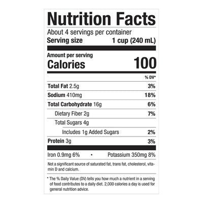 PRODUCT DETAILS: USDA Organic. Certified Organic by Oregon Tilth. Low fat (per serving). Plant-based. 30% Daily Veggies (3/4 cup of vegetables per serving Dietary guidelines recommend 2-1/2 cup of a variety vegetable per day for a 2,000 calorie diet). Crafted with Care: We're passionate about delicious, high-quality ingredients. We source 40 million pounds of Certified Organic ingredients every year. We donate 1 million meals annually to families in need. how2recycle.info. Explore recipes & more at pacificfoods.com. This carton is made with 70% renewable materials. Tetra Pak: Protects what's good. US