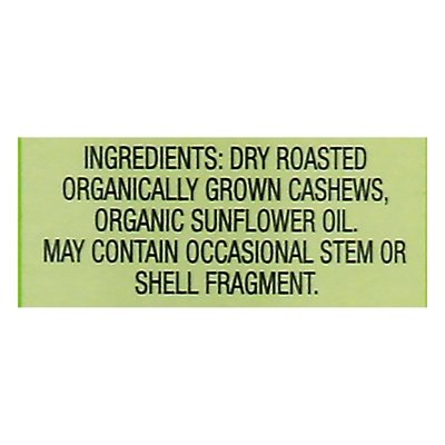 INGREDIENTS: Dry Roasted Organically Grown Cashews Organic Sunflower Oil.