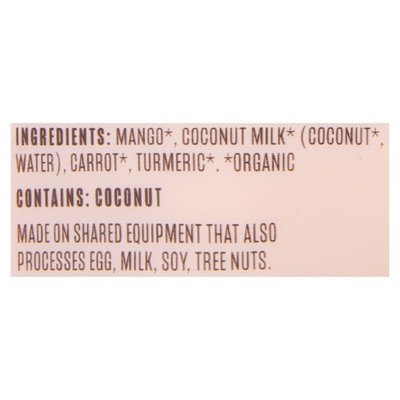 INGREDIENTS: Mango (Organic), Coconut Milk (Organic) (Coconut (Organic) Water), Carrot (Organic), Turmeric (Organic).