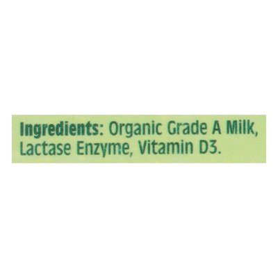 INGREDIENTS: Organic Grade A Milk, Lactase Enzyme, Vitamin D3.
