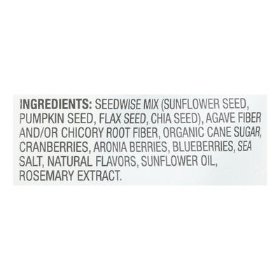 INGREDIENTS: SeedWise Mix (Sunflower Seed, Pumpkin Seed, Flax Seed, Chia Seed), Agave Fiber and/or Chicory Root Fiber, Organic Cane Sugar, Cranberries, Aronia Berries, Blueberries, Sea Salt, Natural Flavors, Sunflower Oil, Rosemary Extract.