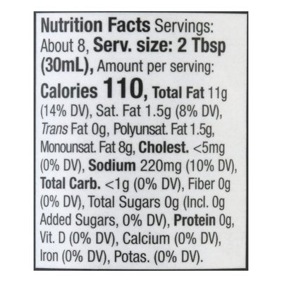 INGREDIENTS: Avocado Oil, Water, Organic Red Wine Vinegar, Organic Distilled Vinegar, Organic Gum Acacia, Organic Guar Gum, Sea Salt, Organic Lemon Juice Concentrate (Adds a Negligible Amount of Sugar), Organic Eggs, Organic Onion Powder, Organic Black Pepper, Organic Basil, Organic Garlic Powder, Organic Oregano, Organic Crushed Red Chile Peppers, Organic Thyme.