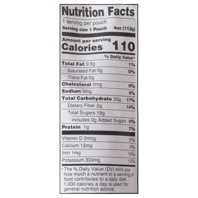 INGREDIENTS: Organic Banana Puree, Organic Mango Puree, Organic Peach Free, Organic Oats, Organic Chia Organic Quinoa Lemon Juice Concentrate.