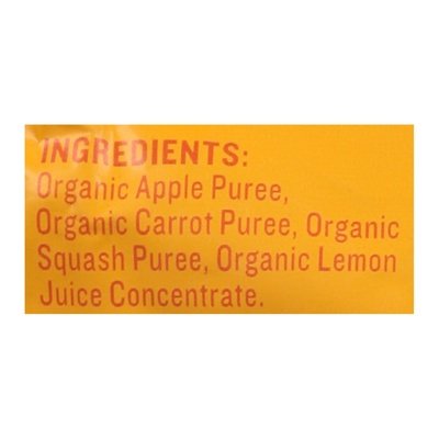 INGREDIENTS: Organic Apple Puree, Organic Carrot Puree, Organic Squash Puree, Organic Lemon Juice Concentrate.
