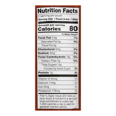 DESCRIPTION: USDA Certified Organic. USDA Organic. Certified Organic by Oregon Tilth. Non GMO Project Verified. nongmoproject.org. Whether it’s the morning rush or after school club, our squeezy pouches are ideal to carry in your bag for snack time. Not diluted with water. www.pumpkintreesnacks.com. BPA free packaging. < Organic Apple Puree, Organic Sweet Potato Puree, Organic Corn Puree, Organic Lemon Juice Concentrate.