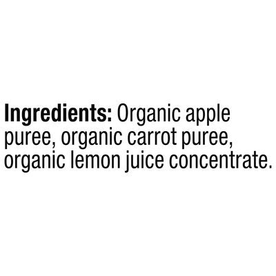 INGREDIENTS: Organic Apple Puree, Organic Carrot Puree, Organic Lemon Juice Concentrate.