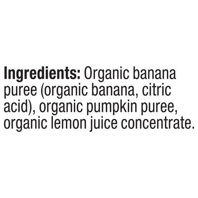 INGREDIENTS: Organic Banana Puree (Organic Banana, Citric Acid), Organic Pumpkin Puree, Organic Lemon Juice Concentrate.