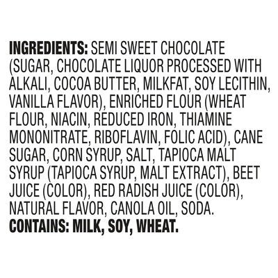 DESCRIPTION: Thin, crunchy pretzel snacks. Contains bioengineered food ingredients. The ingredients from corn and soy in this product come from genetically modified crops. Rethink your pretzel! Celebrate the season with our doubly delicious Dark Chocolate & Peppermint Pretzel Crisps. We've dipped our thin and irresistibly crunchy Pretzel Crisps in rich, velvety real dark chocolate and then sprinkled each one with a delicate burst of refreshing peppermint candy pieces, to create a perfect blend of savory and sweet. One bite and you'll Rethink Your Pretzel! pretzelcrisps.com. how2recycle.info. Facebook. Twitter. Instagram. Pinterest. PretzelCrisps. < Semi Sweet Chocolate (Sugar, Chocolate Liquor Processed with Alkali, Cocoa Butter, Milkfat, Soy Lecithin, Vanilla Flavor), Enriched Flour (Wheat Flour, Niacin, Reduced Iron, Thiamine Mononitrate, Riboflavin, Folic Acid), Cane Sugar, Corn Syrup, Salt, Tapioca Malt Syrup (Tapioca Syrup, Malt Extract), Beet Juice (Color), Red Radish Juice (Color), Natural Flavor, Canola Oil, Soda.