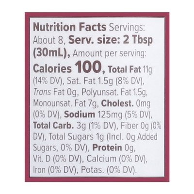 INGREDIENTS: Organic Balsamic Vinegar (Organic Wine Vinegar, Organic Concentrated Grape Must), Avocado Oil, Water, Sea Salt, Organic Lemon Juice Concentrate, Organic Garlic Powder, Organic Onion Powder, Konjac Root, Organic Black Pepper, Organic Basil, Organic Oregano.