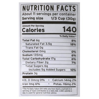 PRODUCT DETAILS: Salty-sweet crunchy clusters. Made with organic quinoa, amaranth and chia. Delicious taste and nutrient-dense ingredients. 5 g added sugar per 30 g serving. Gluten-free. Certified Gluten-free. Certified vegan. vegan.org. Certified Organic by Oregon Tilth. Non-GMO. Non GMO Project verified. nongmoproject.org. Sweetened with coconut sugar + baked with coconut oil. Created to help you thrive on your wellness journey. Eat purely. Live purely. We believe that food can heal. When you eat better, you feel better. That's why we use superfoods with vibrant flavors and rich textures to create foods you will obsess over. But good health is about more than what you eat. It is a holistic approach centered around my Pillars of Living Purely: You are what you eat. Focus on plant-based, nutrient foods. Limit inflammatory foods + Follow the 80/20 rule. 80% of the time be your healthiest self. 20% of the time, indulge - guilt-free. + Good health is more than diet. Exercise, stress management and healthy relationships are equally important. + Live your best life. Live with intention. Innovate, evolve, grow and be grateful. Always made with the highest-quality, nutrient-dense ingredients. Crafted in 2009 by Elizabeth Stein, Certified holistic nutrition counselor. www.purelyelizabeth.com. Instagram: purely_elizabeth. Facebook; Twitter/purelyelizabeth. Certified B Corporation.