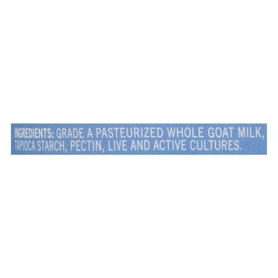 INGREDIENTS: Grade A Pasteurized Whole Goat Milk, Tapioca Starch, Pectin, Live and Active Cultures.