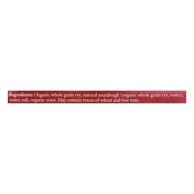 INGREDIENTS: Organic Whole Grain Rye, Natural Sourdough (Organic Whole Grain Rye, Water), Water, Salt, Organic Yeast.