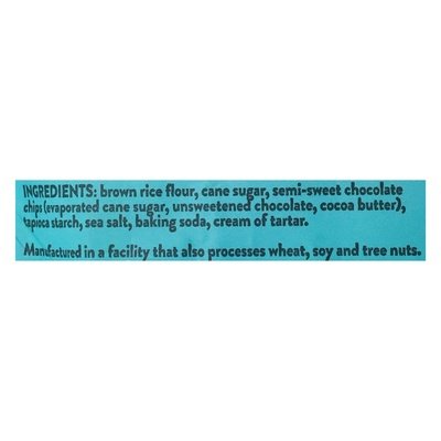 INGREDIENTS: Brown Rice Flour, Cane Sugar, Semi-Sweet Chocolate Chips (Evaporated Cane Sugar, Unsweetened Chocolate, Cocoa Butter), Tapioca Starch, Sea Salt, Baking Soda, Cream of Tartar.