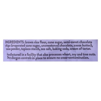 INGREDIENTS: Brown Rice Flour, Cane Sugar, Semi-Sweet Chocolate Chips (Evaporated Cane Sugar, Unsweetened Chocolate, Cocoa Butter), Cocoa Powder, Tapioca Starch, Sea Salt, Baking Soda, Cream of Tartar.