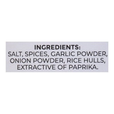 INGREDIENTS: Salt, Spices, Garlic Powder, Onion Powder, Rice Hulls, Extractive of Paprika.